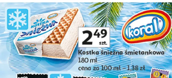 Cena produktu r贸偶ni si臋 w zale偶no艣ci od wybranego sklepu. Niestety nie posiadamy danych o aktualnych promocjach, jednak w艣r贸d archiwalnych ofert L贸d 艣mietankowy Koral kosztuje od 1,9 z艂 do 2,49 z艂.