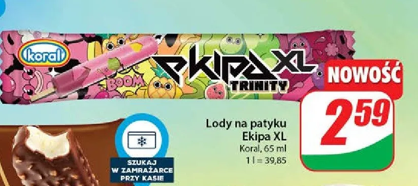 Cena produktu r贸偶ni si臋 w zale偶no艣ci od wybranego sklepu. Niestety nie posiadamy danych o aktualnych promocjach, jednak w艣r贸d archiwalnych ofert L贸d trinity KORAL EKIPA kosztuje od 2,59 z艂.