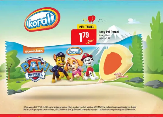 Gdzie mo偶na tanio kupi膰 produkt L贸d waniliowy-truskawkowy psi patrol Koral?