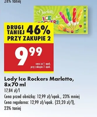 Cena produktu r贸偶ni si臋 w zale偶no艣ci od wybranego sklepu. Niestety nie posiadamy danych o aktualnych promocjach, jednak w艣r贸d archiwalnych ofert L贸d waniliowy w polewie kiwi x2 + mango-marakuja x2 + truskawka x2 + wi艣nia x2 Marletto kosztuje od 9,99 z艂.
