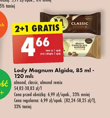 Ile kosztuje L贸d white almond Algida magnum?