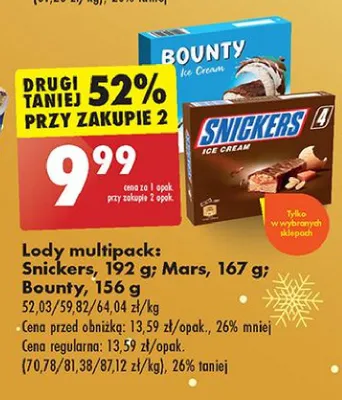 Cena produktu r贸偶ni si臋 w zale偶no艣ci od wybranego sklepu. Niestety nie posiadamy danych o aktualnych promocjach, jednak w艣r贸d archiwalnych ofert Lody Bounty ice cream kosztuje od 8,99 z艂 do 11,99 z艂.