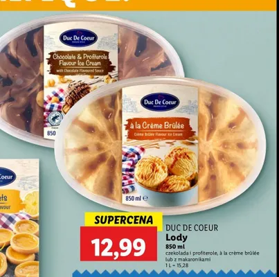 Cena produktu r贸偶ni si臋 w zale偶no艣ci od wybranego sklepu. Niestety nie posiadamy danych o aktualnych promocjach, jednak w艣r贸d archiwalnych ofert Lody chocolate & profitelore Duc de coeur kosztuje od 9,99 z艂 do 12,99 z艂.