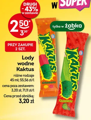 Cena produktu r贸偶ni si臋 w zale偶no艣ci od wybranego sklepu. Niestety nie posiadamy danych o aktualnych promocjach, jednak w艣r贸d archiwalnych ofert Lody gibek Nestle kaktus kosztuje od 2,5 z艂.