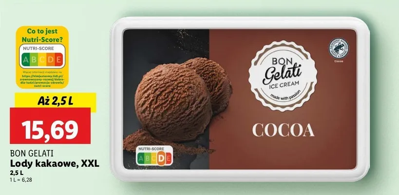 Cena produktu r贸偶ni si臋 w zale偶no艣ci od wybranego sklepu. Produkt Lody kakaowe BON GELATI mo偶esz kupi膰 w promocji ju偶 od 15,99 z艂. Najta艅sza oferta, jak膮 mamy w naszej bazie jest z sieci Delikatesy Centrum. Lody kakaowe BON GELATI kosztuje aktualnie 15,99 z艂. Zobacz ofert臋