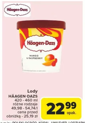 Ile kosztuje Lody mango & raspberry Haagen-dazs?