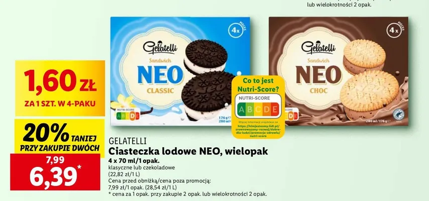 Cena produktu r贸偶ni si臋 w zale偶no艣ci od wybranego sklepu. Niestety nie posiadamy danych o aktualnych promocjach, jednak w艣r贸d archiwalnych ofert Lody neo chocolate Gelatelli kosztuje od 6,39 z艂 do 7,99 z艂.