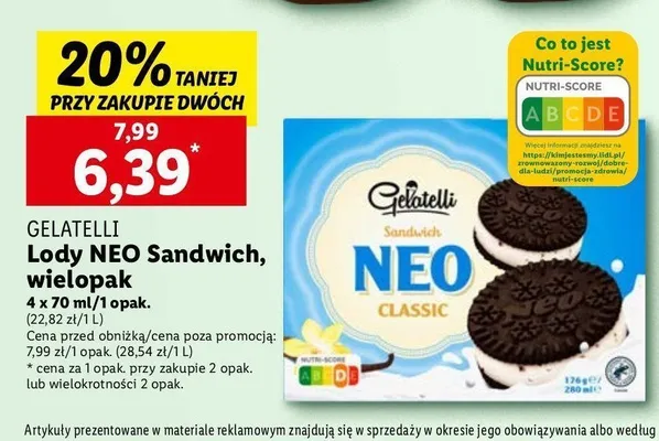 Cena produktu r贸偶ni si臋 w zale偶no艣ci od wybranego sklepu. Niestety nie posiadamy danych o aktualnych promocjach, jednak w艣r贸d archiwalnych ofert Lody neo classic Gelatelli kosztuje od 6,39 z艂 do 7,99 z艂.