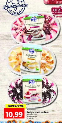 Przegl膮daj podobne oferty promocyjne do Lody o smaku kremu bawarskiego z truskawkami Alpen fest!