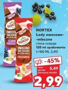 Ile kosztuje Lody owocowo-艣mietankowe czarna porzeczka w czekoladzie mlecznej Hortex?