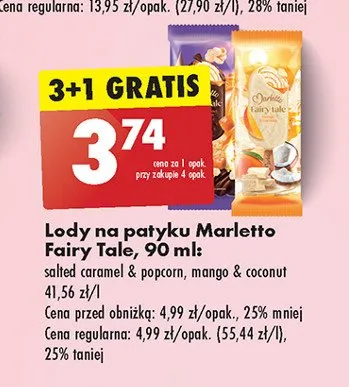 Cena produktu r贸偶ni si臋 w zale偶no艣ci od wybranego sklepu. Niestety nie posiadamy danych o aktualnych promocjach, jednak w艣r贸d archiwalnych ofert Lody salted caramel & popcorn Marletto kosztuje od 3,74 z艂.