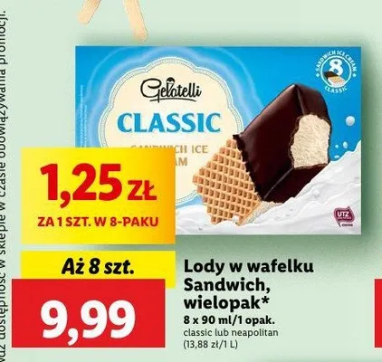 Ile kosztuje Lody sandwich classic Gelatelli?