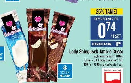 Przegl膮daj oferty promocyjne na produkt Lody smietankowe w polewie Amore gusto 艣niegusek
