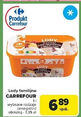 Przegl膮daj oferty promocyjne na produkt Lody 艣mietankowe z bakaliami Carrefour