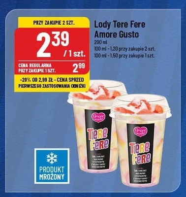 Cena produktu r贸偶ni si臋 w zale偶no艣ci od wybranego sklepu. Niestety nie posiadamy danych o aktualnych promocjach, jednak w艣r贸d archiwalnych ofert Lody 艣mietankowo-malinowo-cytrynowe z sosem truskawkowym Amore gusto tere fere kosztuje od 2,39 z艂.