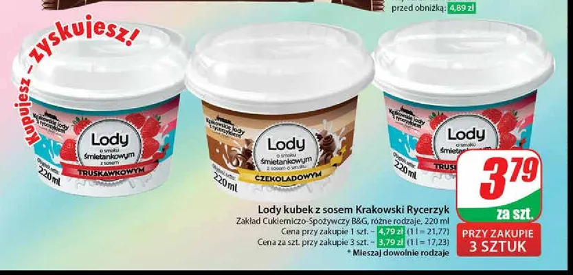 Przegl膮daj podobne oferty promocyjne do Lody truskawkowe Krakowskie lody z rycerzykiem!
