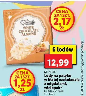 Lody w bia艂ej czekoladzie z migda艂ami Gelatelli promocje w sklepach - znajd藕 ofert臋 dla siebie!