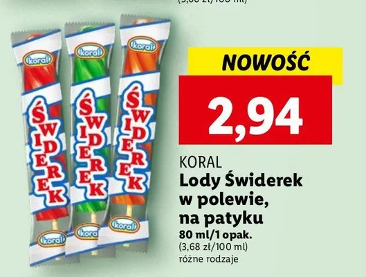 Ile kosztuje Lody waniliowe w otoczkach wodnych jab艂kowych (kolorowe) Koral 艣widerek?