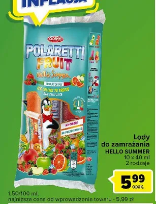Cena produktu r贸偶ni si臋 w zale偶no艣ci od wybranego sklepu. Niestety nie posiadamy danych o aktualnych promocjach, jednak w艣r贸d archiwalnych ofert Lody wodne bio POLARETTI FRUIT kosztuje od 5,99 z艂.
