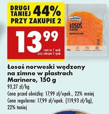 Łosoś norweski wędzony plastry Marinero promocje w sklepach - znajdź ofertę dla siebie!