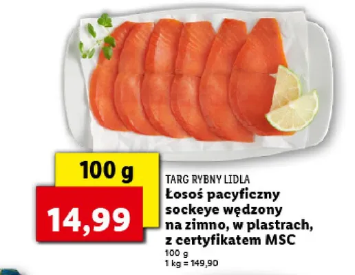 Ile kosztuje 艁oso艣 pacyficzny sockeye w臋dzony na zimno w plastrach Rybny targ lidla?