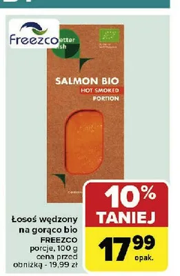 Cena produktu różni się w zależności od wybranego sklepu. Niestety nie posiadamy danych o aktualnych promocjach, jednak wśród archiwalnych ofert Łosoś wędzony na gorąco bio kosztuje od 13,89 zł do 17,99 zł.