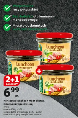 Przegl膮daj podobne oferty promocyjne do Luncheon meat extra Auchan pewni dobrego!