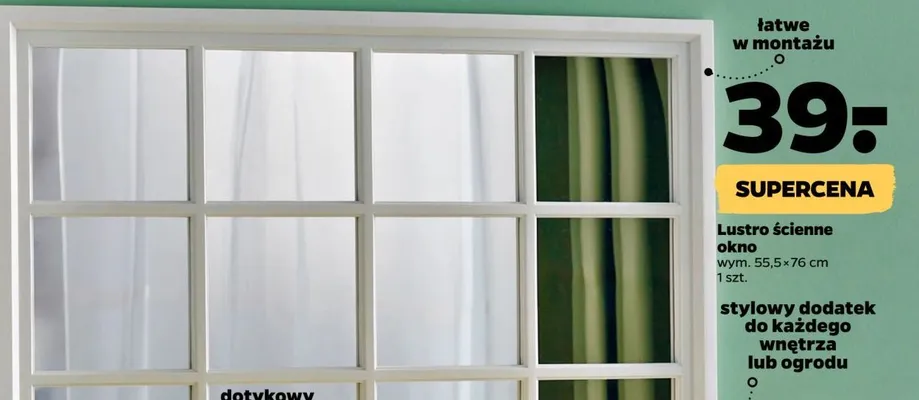 Zastanawiasz si臋, gdzie kupi膰 i ile kosztuje produkt Lustro okno 55.5 x 76 cm? Regularnie sprawdzamy, czy jest promocja na ten produkt w Biedronka, Lidl, Kaufland, Auchan, Netto, Makro i innych sklepach. Aktualnie nie posiadamy ofert promocyjnych na ten produkt.