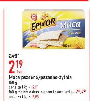 Cena produktu r贸偶ni si臋 w zale偶no艣ci od wybranego sklepu. Niestety nie posiadamy danych o aktualnych promocjach, jednak w艣r贸d archiwalnych ofert Maca z siemieniem lnianym i czarnuszk膮 Wiod膮ca marka epi d'or kosztuje od 2,19 z艂.