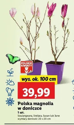 Zastanawiasz si臋, gdzie kupi膰 i ile kosztuje produkt Magnolia soulangeana? Regularnie sprawdzamy, czy jest promocja na ten produkt w Biedronka, Lidl, Kaufland, Auchan, Netto, Makro i innych sklepach. Aktualnie posiadamy 1 ofert臋 promocyjn膮 na ten produkt. Ceny zaczynaj膮 si臋 od z艂!