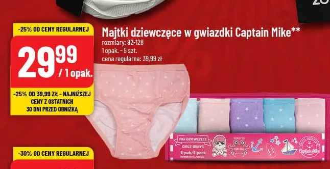Przegl膮daj podobne oferty promocyjne do Majtki dziewcz臋ce w gwiazdki 92/98-122/128 Captain mike!