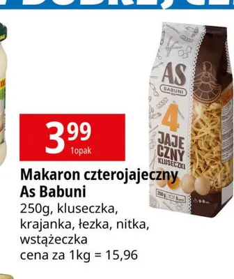 Makaron 4-jajeczny wstążki As-babuni promocje w sklepach - znajdź ofertę dla siebie!