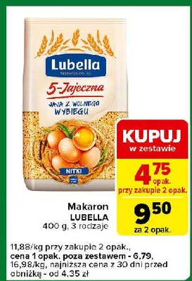 Przegl膮daj oferty promocyjne na produkt Makaron 5-jajeczny jaja z wolnego wybiegu nitki Lubella makaron