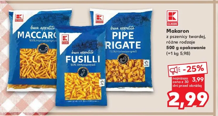 Gdzie mo偶na tanio kupi膰 produkt Makaron fusilli K-classic?