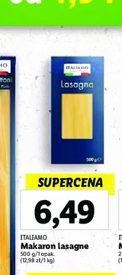 Zastanawiasz si臋, gdzie kupi膰 i ile kosztuje produkt Makaron lasagne Italiamo? Regularnie sprawdzamy, czy jest promocja na ten produkt w Biedronka, Lidl, Kaufland, Auchan, Netto, Makro i innych sklepach. Aktualnie posiadamy 4 oferty promocyjne na ten produkt. Ceny zaczynaj膮 si臋 od 9,99z艂!