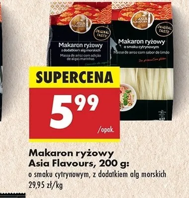 Cena produktu r贸偶ni si臋 w zale偶no艣ci od wybranego sklepu. Niestety nie posiadamy danych o aktualnych promocjach, jednak w艣r贸d archiwalnych ofert Makaron ry偶owy cytrynowy Asia flavours kosztuje od 5,99 z艂.