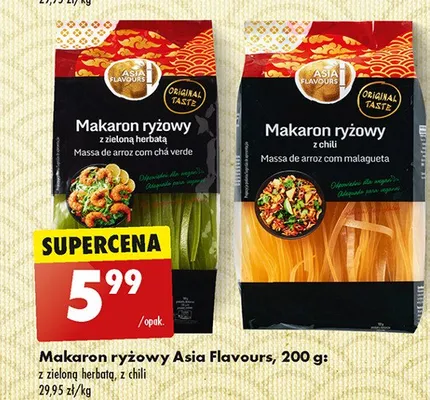 Cena produktu różni się w zależności od wybranego sklepu. Niestety nie posiadamy danych o aktualnych promocjach, jednak wśród archiwalnych ofert Makaron ryżowy z tapioką i zieloną herbatą Asia flavours kosztuje od 5,99 zł.