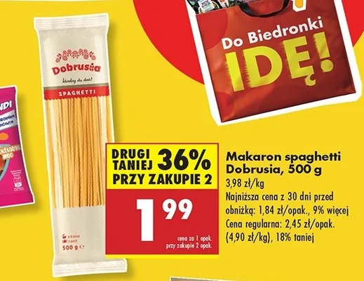 Zastanawiasz si臋, gdzie kupi膰 i ile kosztuje produkt Makaron spaghetti Dobrusia? Regularnie sprawdzamy, czy jest promocja na ten produkt w Biedronka, Lidl, Kaufland, Auchan, Netto, Makro i innych sklepach. Aktualnie posiadamy 9 ofert promocyjnych na ten produkt. Ceny zaczynaj膮 si臋 od z艂!