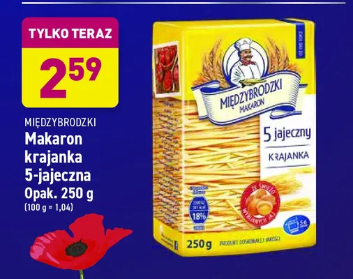 Cena produktu r贸偶ni si臋 w zale偶no艣ci od wybranego sklepu. Niestety nie posiadamy danych o aktualnych promocjach, jednak w艣r贸d archiwalnych ofert Makaron swojski krajanka Mi臋dzybrodzki makaron beskidzki kosztuje od 2,59 z艂.