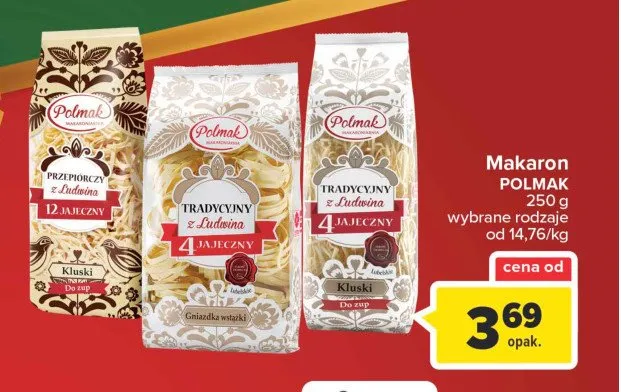Przeglądaj podobne oferty promocyjne do Makaron tradycyjny z ludwina 4 jajeczny gniazdka wstążki Polmak!