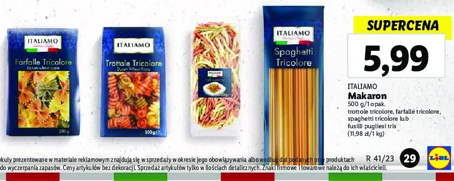 Przegl膮daj podobne oferty promocyjne do Makaron trottole tricolore Italiamo!