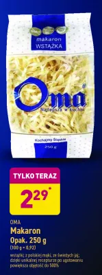 Zastanawiasz się, gdzie kupić i ile kosztuje produkt Makaron wstążka Oma? Regularnie sprawdzamy, czy jest promocja na ten produkt w Biedronka, Lidl, Kaufland, Auchan, Netto, Makro i innych sklepach. Aktualnie posiadamy 2 oferty promocyjne na ten produkt. Ceny zaczynają się od 2,29zł!