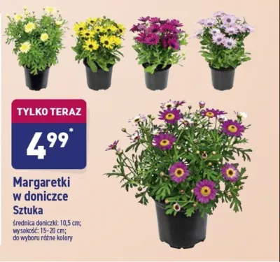 Cena produktu r贸偶ni si臋 w zale偶no艣ci od wybranego sklepu. Niestety nie posiadamy danych o aktualnych promocjach, jednak w艣r贸d archiwalnych ofert Margaretka 15-20 cm kosztuje od 4,99 z艂.