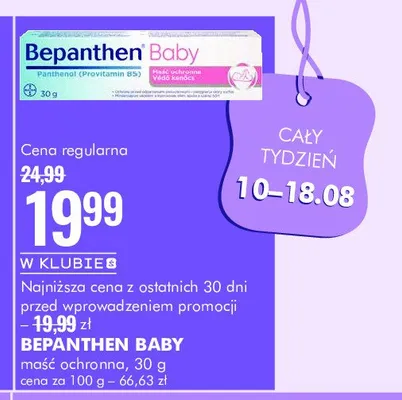 Cena produktu r贸偶ni si臋 w zale偶no艣ci od wybranego sklepu. Niestety nie posiadamy danych o aktualnych promocjach, jednak w艣r贸d archiwalnych ofert Ma艣膰 Bepanthen baby kosztuje od 17,99 z艂 do 49,99 z艂.