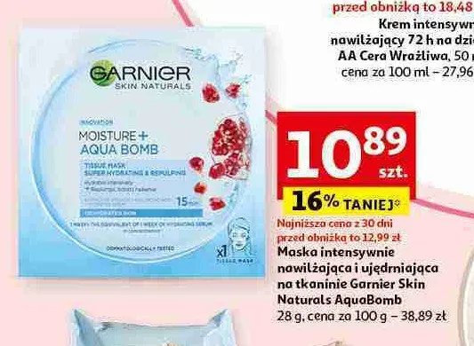 Ile kosztuje Maseczka moisture + aqua bomb Garnier skin naturals?