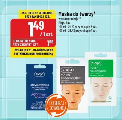 Ile kosztuje Maseczka na twarz i szyj臋 na noc aktywnie wyg艂adzaj膮ca Ziaja jagody acai (antyoksydacja)?