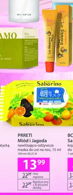 Cena produktu r贸偶ni si臋 w zale偶no艣ci od wybranego sklepu. Niestety nie posiadamy danych o aktualnych promocjach, jednak w艣r贸d archiwalnych ofert Maseczka na usta na noc mi贸d i jagoda Prreti kosztuje od 13,79 z艂 do 21,99 z艂.