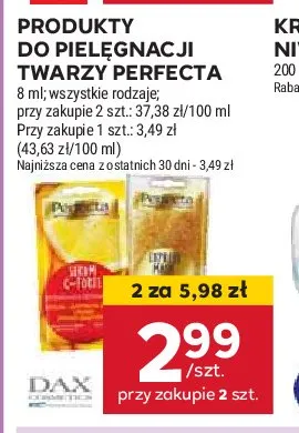 Cena produktu r贸偶ni si臋 w zale偶no艣ci od wybranego sklepu. Niestety nie posiadamy danych o aktualnych promocjach, jednak w艣r贸d archiwalnych ofert Maseczka regeneracyjna Perfecta serum c-forte kosztuje od 2,49 z艂 do 2,99 z艂.