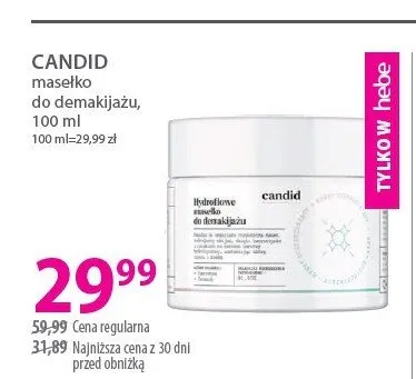 Cena produktu różni się w zależności od wybranego sklepu. Niestety nie posiadamy danych o aktualnych promocjach, jednak wśród archiwalnych ofert Masełko do demakijażu Candid kosztuje od 29,99 zł do 32,99 zł.