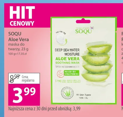 Ile kosztuje Maska do twarzy koj膮ca z aloesem Soqu?